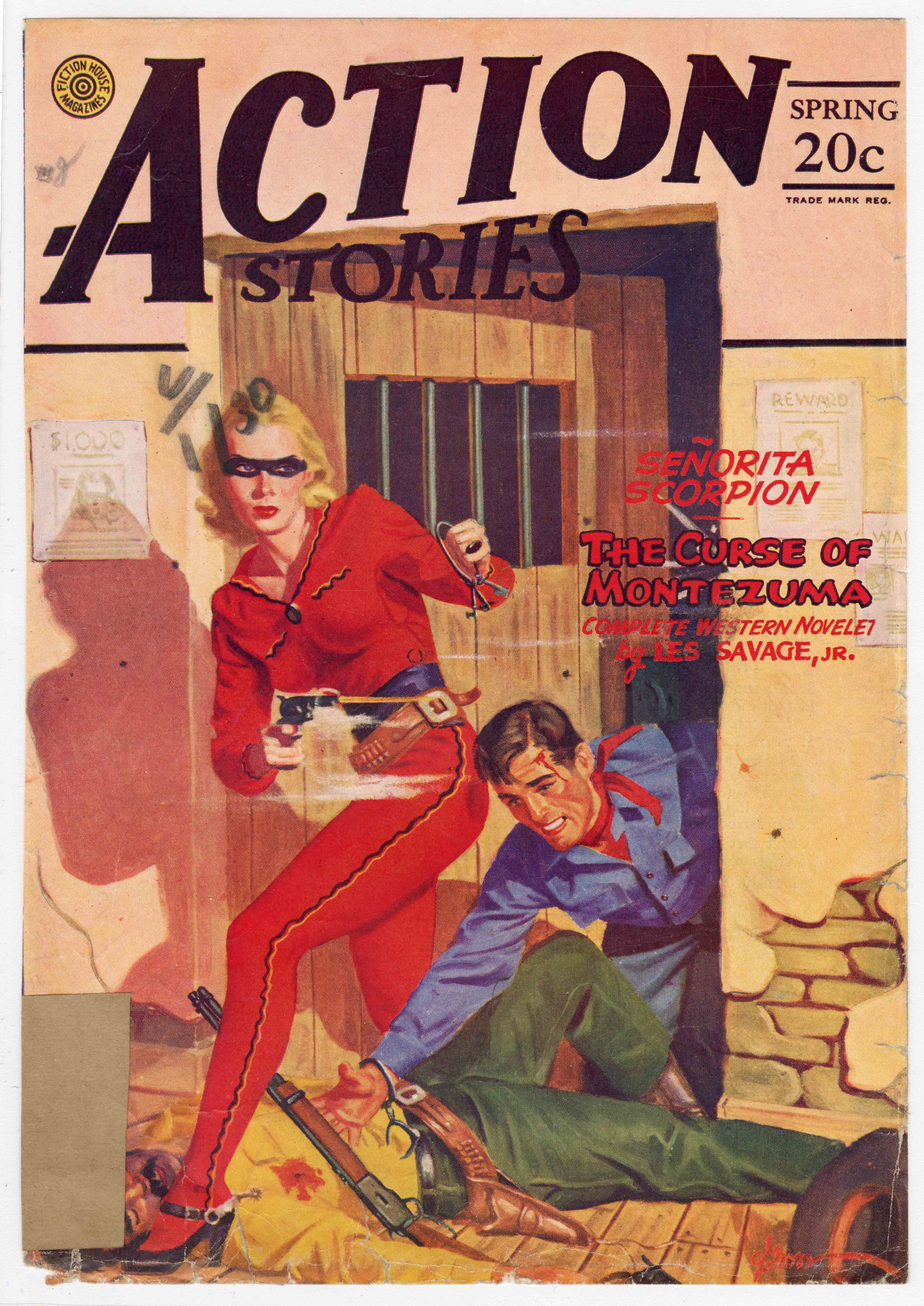 The 'Action Stories' Pulp Magazine Covers contains 18 separated covers from the pulp magazine 'Action Stories,' with a focus on covers depicting Western-themed stories. In addition to the art, the covers contain titles and/or authors of the stories that were published in that edition of the magazine. The character of Senorita Scorpion appears on three of the covers.